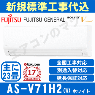 ★2000円クーポン配布中★【取寄商品】【超お買い得な工事費込セット(商品+新規標準工事)】【送料無料(沖縄/離島除く)】富士通ゼネラル■AS-V71H2-W■ ※単相200V 2018年モデル【-nocria-Vシリーズ】[主に23畳用][240]