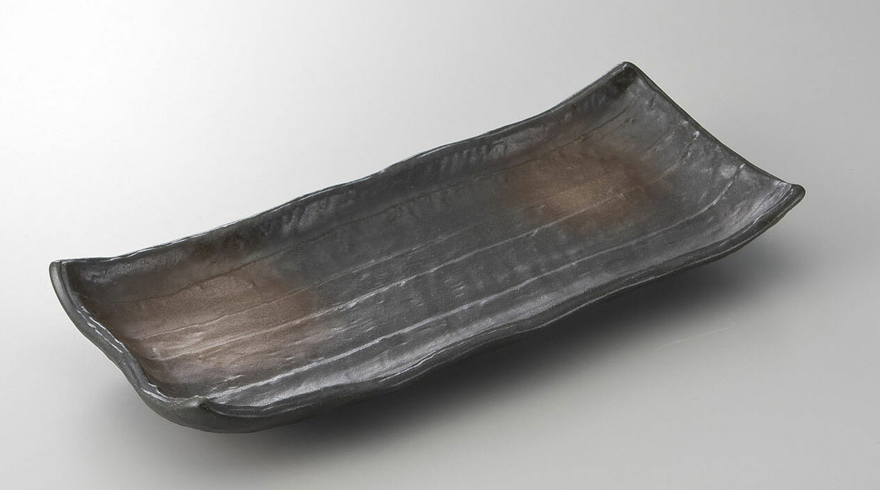 和陶器 オープン 黒備前風 渕波サンマ皿 [12 x 28 x 4.5cm] 【料亭 旅館 和食器 飲食店 業務用】